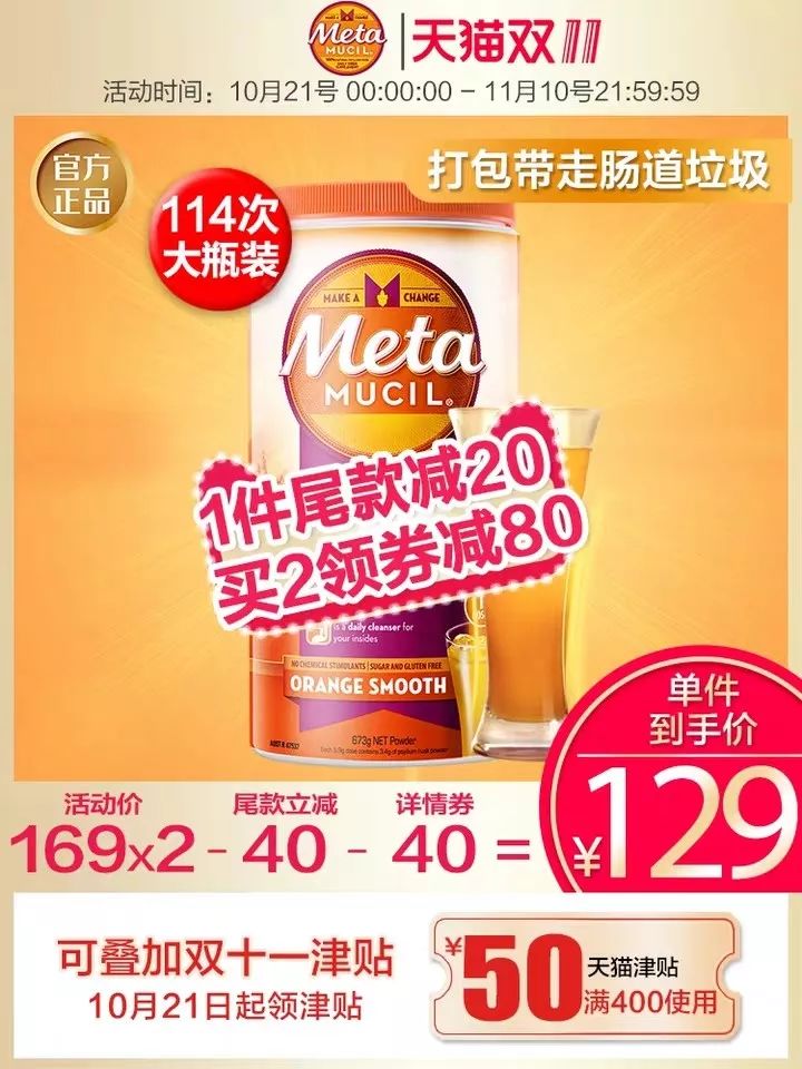 趁着双十一的档期,美达施膳食纤维粉有大促活动啦!它们每次双十一的促销都超级良心实在,很建议趁着大促期间囤囤囤!
