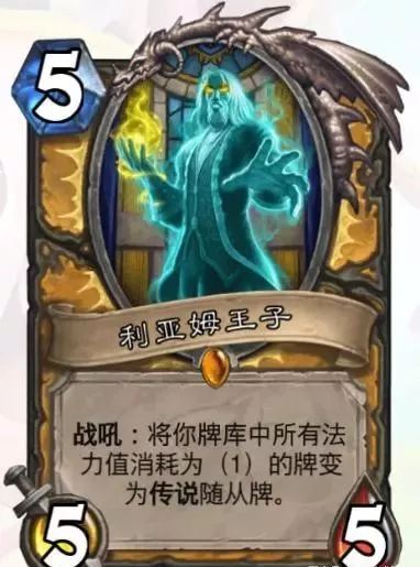 其中开局塞五张传说的应该是最早的王子了,但随机性太大,不好控制。这么多年来一直不温不火,竞技场偶尔有人选,天梯除了萌新或者为了好玩,基本没有上场的机会。利亚姆的出场机会也相当少,将一费卡牌变为传说随从虽然增加了厚度,但也仅仅是可能。毕竟传说里弱的也不少,而没有配合就能称得上强的,更是没几张。可说都不咋地。