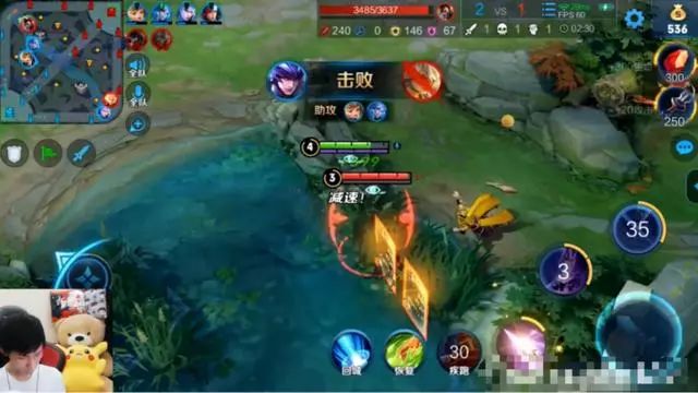 对面的“张良针对”在开局也确实起到了不错的效果。梦泪在上路和宫本武藏相互对线消耗,一片岁月静好的情况,却突然被娜可露露带着张良前来打破了这一平静。梦泪见势不妙开启疾跑就开溜,然而张良的1技能阻挡了一下,同时娜可露露的大招也有不错的加速效果,在追了梦泪“一条街”后成功击杀了梦泪的马超。