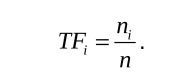 3.1 TF——词频(Term Frequency)TF部分是指某个特征在单幅图像中出现的频率。假设图像M中单词wi出现了ni次,而一共出现的单词次数为n,则TFi计算公式如下: