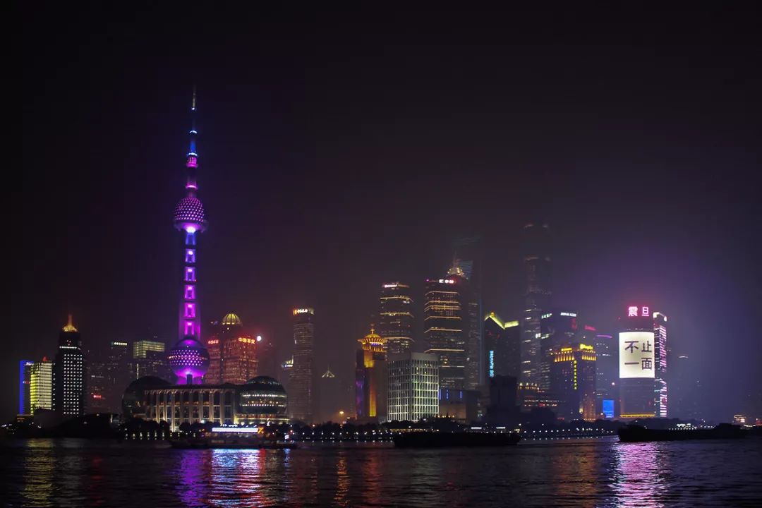 华灯亮起,同学们一起乘坐游艇,静静欣赏上海滩美丽夜景。