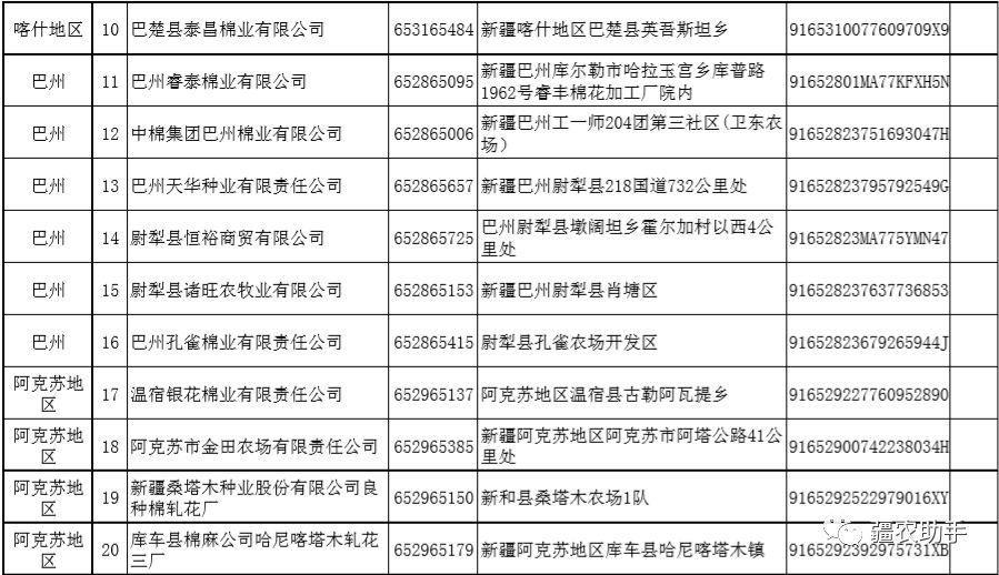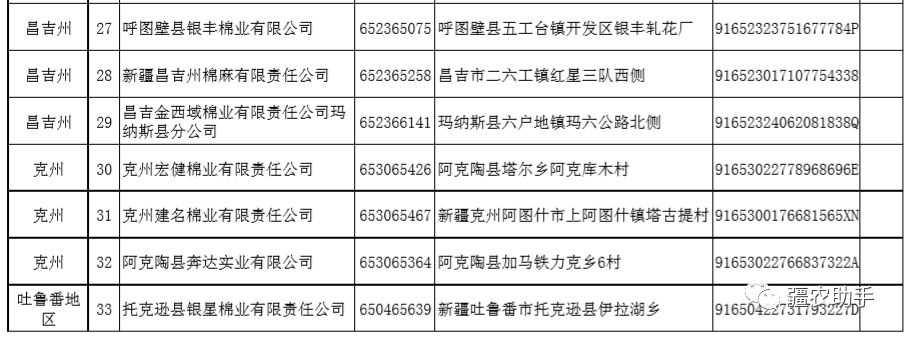 2019年自治区棉花目标价格改革加工企业公示(第四、五批)