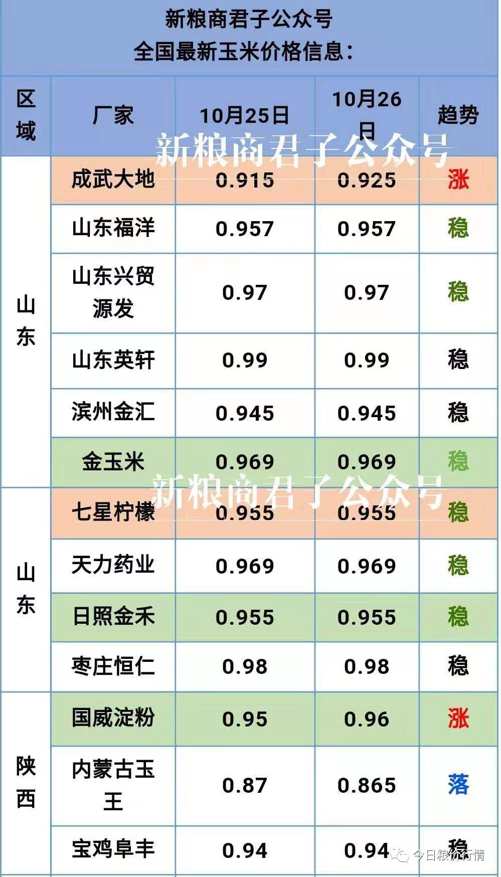 玉米落价信息: