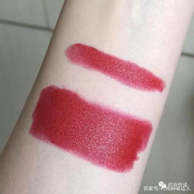 因为上唇试色千人千色,所以按国际惯例在手臂上试了个色,这个口红的膏体很软糯,超级顺滑好涂,试色的时候一点卡顿感都没有,这个口红的妆效是哑光的,显色度和饱和度表现得很不错~