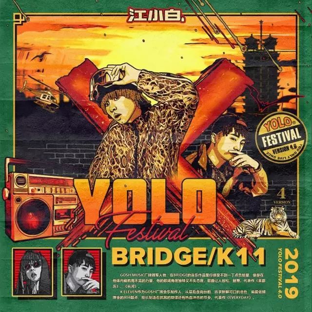 GOSH MUSIC厂牌领军人物,在Bridge的音乐作品里你感受不到一丁点负能量,像是在他体内藏着用不完的力量,他的歌词角度独特又不失态度,歌曲让人放松、鼓舞。代表作《雾都历》、《长河》。K ELEVEN作为GO$H厂牌音乐制作人,从幕后走向台前,追求新鲜可口的音色,偏爱低频厚重的808鼓点,擅长制造着抓耳的旋律还有热血冲击的节奏。代表作《EVERYDAY》。