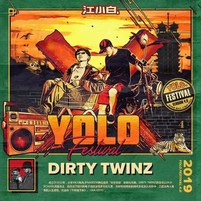 成立于2012年,小车Vico和丸子Naseem两位成员“非亲非故”却胜似兄弟。Dirty Twinz的音乐以Old school风格为主,结合当下时兴的电子或摇滚等多元化元素,并时常将西安的城市文化加入创作中,凸显出两人独有的人生感悟。代表作《干杯就干杯》、《XA CITY》。