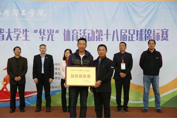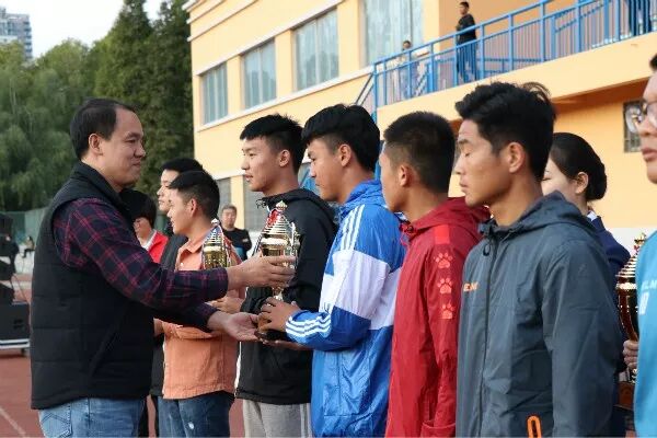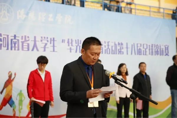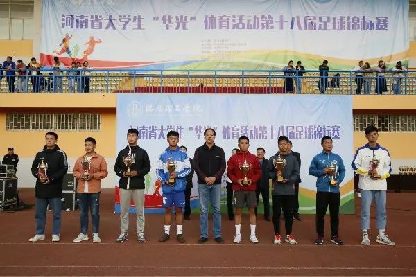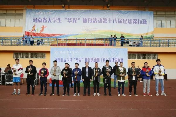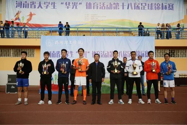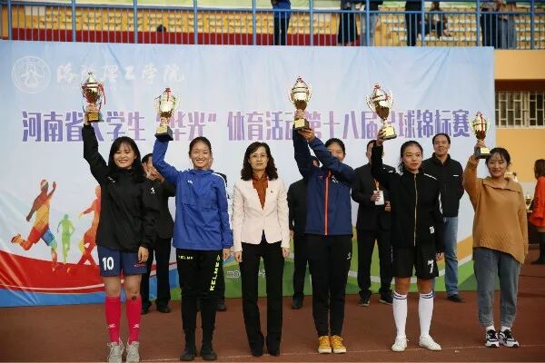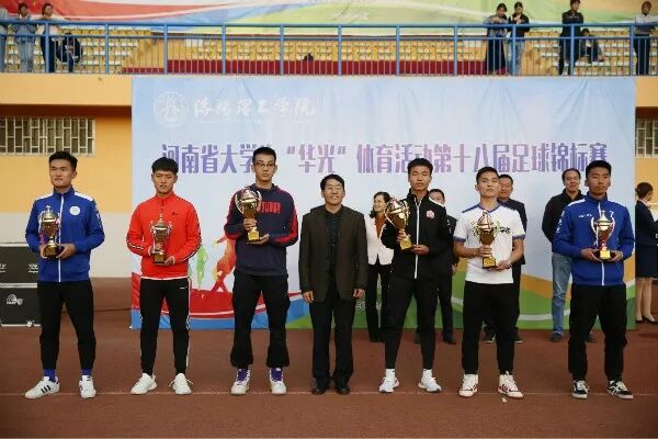 10月26日下午,河南省大学生“华光”体育活动第十八届足球锦标赛在我校开元校区东田径场举行闭幕式。副校长丁梧秀、校工会曾涛,河南省校足办专家成员、河南省高校体协常委、本次比赛监督、郑州轻工业大学体育学院院长李向东,河南省学生体育总会足球协会秘书长、河南师范大学校体委副主任王健,本届足球比赛裁判长耿亮,我校体育教学部负责人柴玉强、史鲜玲等出席闭幕式。来自各参赛学校足球队教练员、运动员参加了闭幕式。闭幕式由河南省高校体协常委,洛阳理工学院体育教学部主任史鲜玲主持。