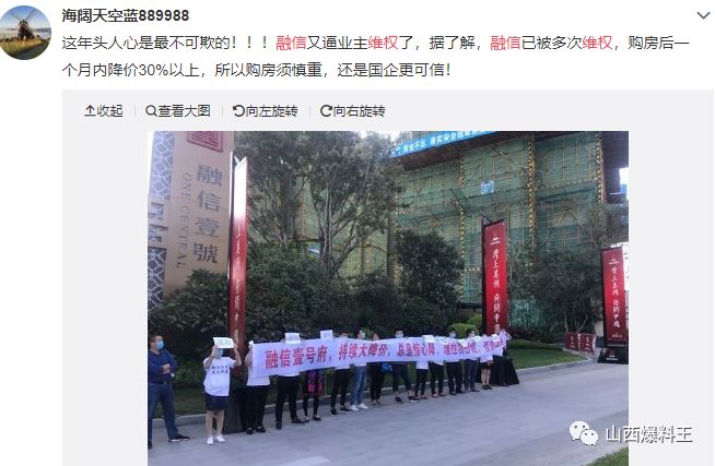 在微博上“融信”似乎也是网红,各类维权信息、图片、新闻报道不时出现。