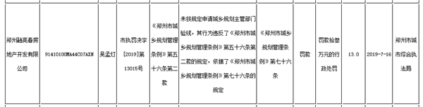 在今年7月,同样在郑州市,“融信”就因违反规划部门相关规定被处罚,而据当地媒体统计,“融信”在郑州因多次违规被罚,累计罚款已超超137万!