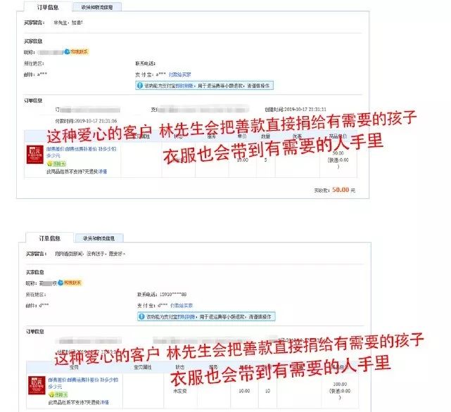 还有好心人,下单了200件衣服,告诉客服不用发货,让他们捐给山区的孩子们。
