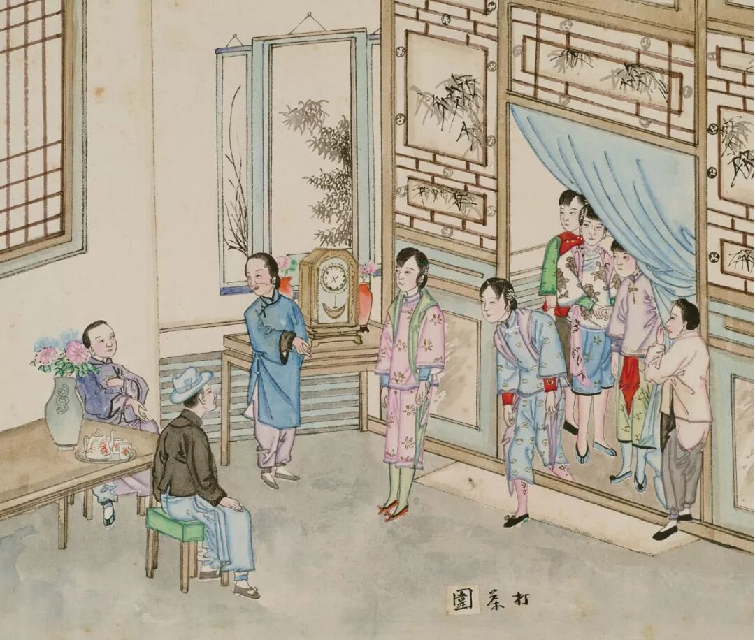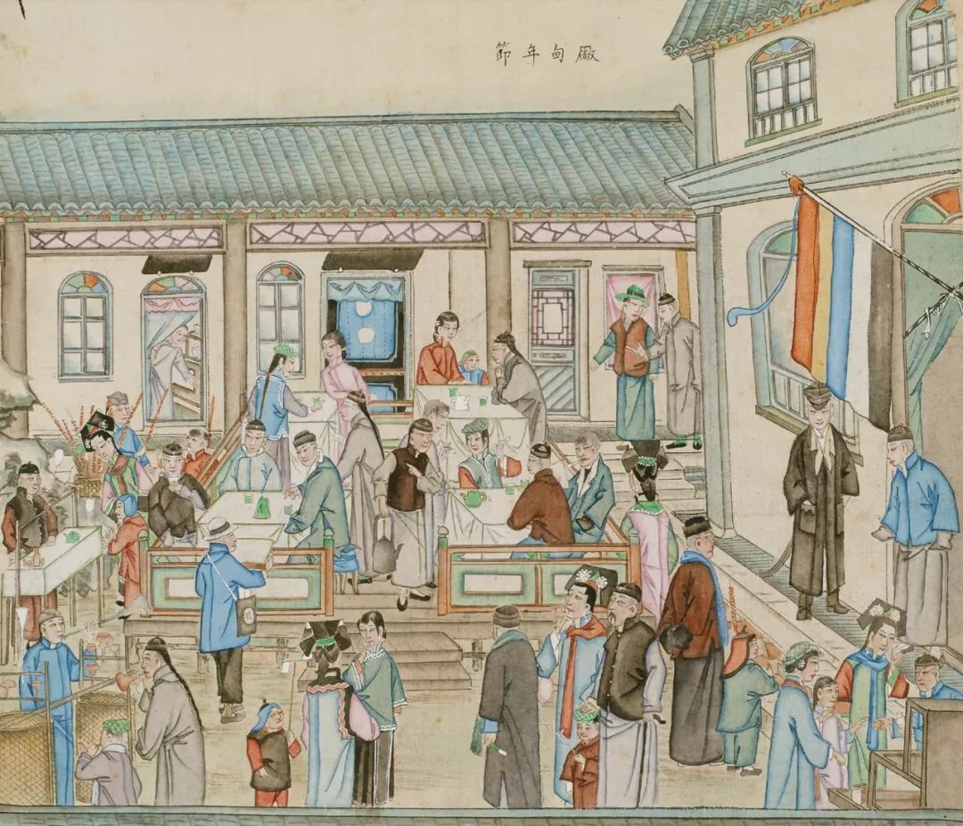 于是,在翻阅无数资料、接触若干画师之后,青木正儿最终请来中国画师刘延年,准备用中国传统风俗画,记录下当时的百姓生活。两个人东奔西走、你说我画,像如今举着相机扫街的摄影师一般,花了两年时间,画了117幅彩图,详细记录了当时中国人的传统节日、婚葬仪式、生活用品、服装食物、娱乐、戏剧、技艺等民间习俗。