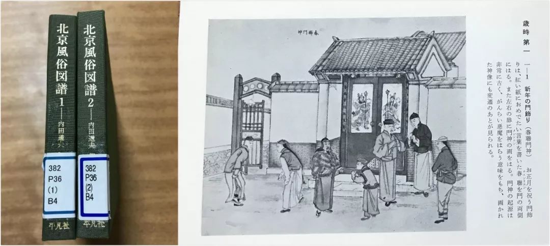 译者提供的1964日版《北京风俗图谱》书脊及内页图