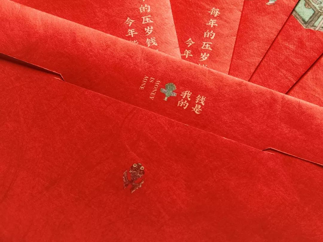 看,连封口上也加粗标注“钱是我的”。时刻提醒当代家长朋友们:不要剥夺了老祖宗们传下来的“春节孩童红包之乐”。