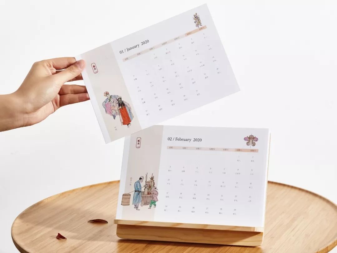 月份台历由一个松木架和十二张月历组成。在中国传统意象中,松树为吉祥物,寓意美好长青。