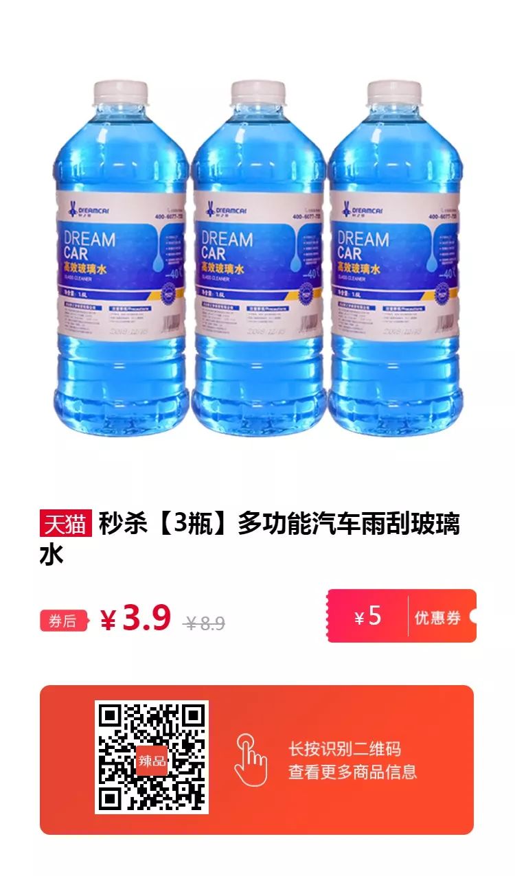 3瓶【4.8L大瓶装】多功能升级版玻璃水。四季通用!强力去污油膜,全天候车窗清洗液,绿色环保,清洁去污,不含甲醛,不留水垢,专业配方,用的更安心驾驶更安全~