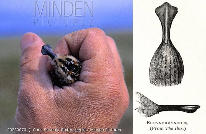 右图为勺嘴鹬的嘴部绘画 | Alfred Newton