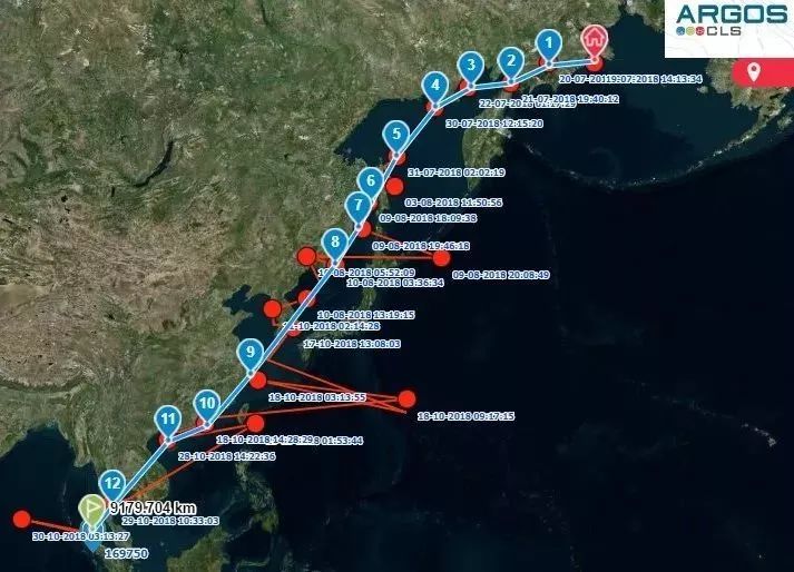 在Saving the Spoon-billed Sandpiper官网,我看到了超级小勺07的故事,下图是它历时三个半月,长达9000公里的南迁之旅,由北方俄罗斯极地至热带的苏门答腊北部。