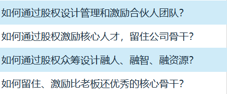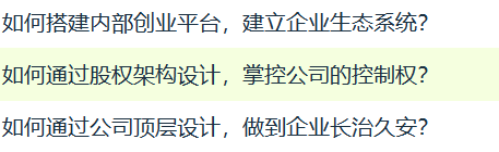 课程对象:创始人,合伙人,股东,接班人,企业决策者。