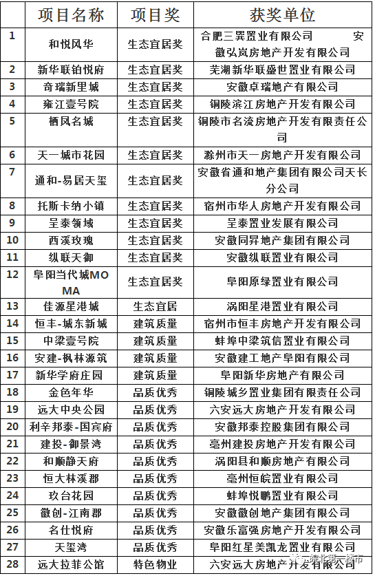 一、刚刚!安徽省品牌房企名单出炉!祥源、乐富强、同昇…纷纷上榜!