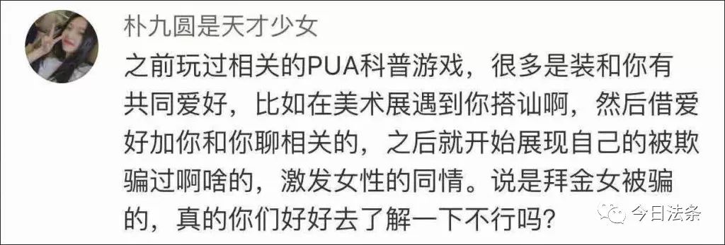 还有网友看完后质疑,这么简单的套路,怎么会有人会上钩?但现实是,尽管内容恶心低俗,不良 PUA 组织近年来却深扎于网络并呈蔓延趋势,确实有女性受到了实质性的伤害。