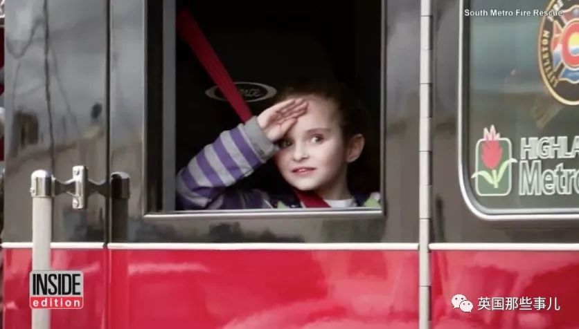 任务完成之后,她又身穿制服坐轮椅里,由母亲Kelly推着参观了消防队的更衣室。