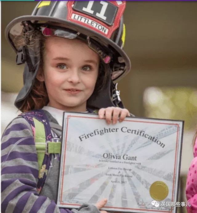 这一天,他们特意为Olivia准备了一整套“救火”任务。消防队一大早开着消防车出来接Olivia去“上班”。