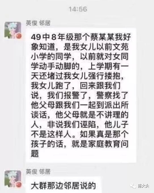 甚至蔡某某的舅舅发声,认为网友过火,太扯淡,自己的孩子是好孩子?