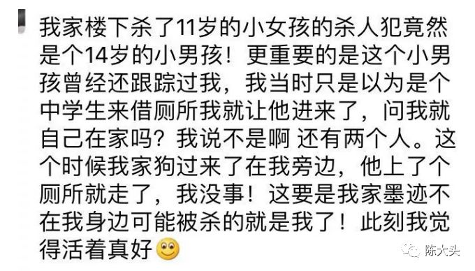 帖子中有一个细节:他还是个孩子! 对,正是父母的溺爱让熊孩子肆无忌惮,最后,熊孩子和杀人犯就只有一线之隔。