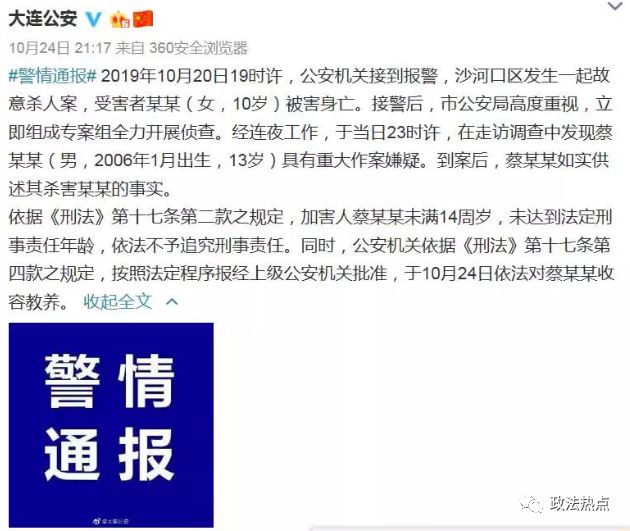 提起2019年10月20日下午发生在辽宁大连的10岁女孩身中7刀身亡事件,可以说是触痛了无数人的心,当天下午3点30分左右,大连市沙河区的一10岁左右的小女孩下课后没有按时回家,家人四处寻找后,在离家100米处的灌木丛中发现了她的遗体,身上中了7刀,后脑、颈部、胸前都有伤口!