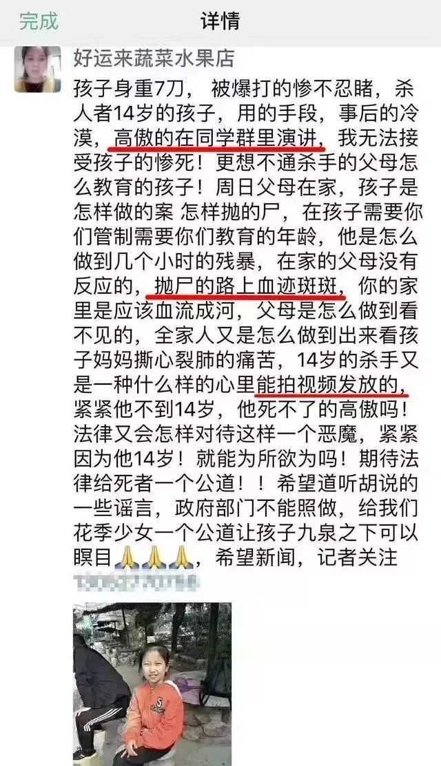 这简直就是要了淇淇父母的老命,让他们顿时崩溃:孩子死的时候该是多少害怕,多么无助,多么难以置信,她怎么能想到,一个需要帮忙的大哥哥竟然是想要她命的恶魔。如果可以重来一次,她一定不会做一个乐于助人的“好孩子”。
