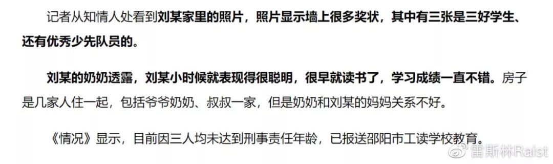 我14岁的时候已经什么都懂了,我周围有人14岁的时候已经谈恋爱或者出去做生意了。如果一个“孩子”,做了错事,没有被惩罚,只会把他推向更罪恶的深渊。