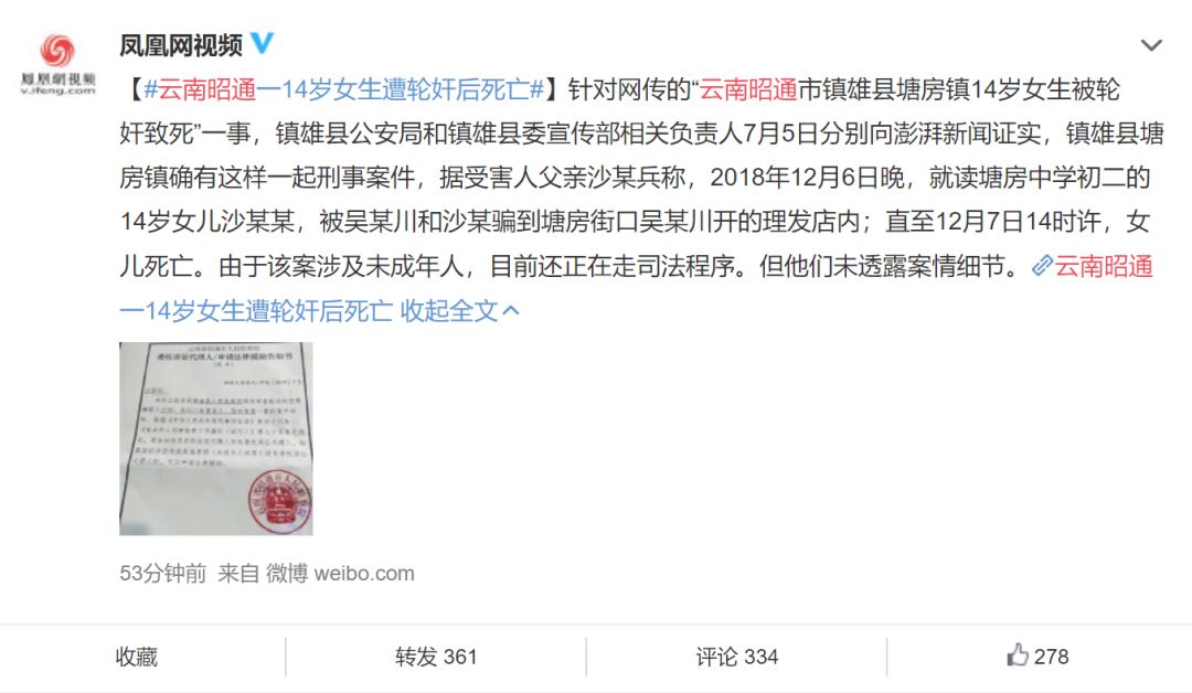 去年12月云南昭通的事情,也是一起未成年人犯罪引起的悲剧: