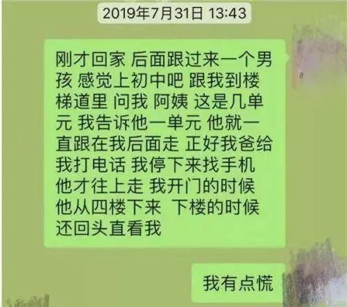 随后小区内一名女子业主讲述被尾随的经过“那天下班回家又碰见他了,我上楼到一楼半,看见个黑校服裤子,我就感觉不对,然后(他)问是几单元。我就赶紧跑到五楼敲门,听见我敲门他就嘟囔啥下去了。他干啥老跟人进楼道啊?这个小孩上次看见我在楼道里问我是几单元,然后想搂我,这次更吓人,那天给我吓毁了。”