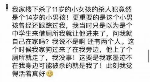 近日,家住大连市鹏程街的10岁女孩王某,在从美术班下课回家途中失踪,家属四处寻找后在距家百余米外的灌木丛中发现了她的遗体,身中7刀。当晚,警方就在同小区内抓获了年仅13周岁的嫌疑人男孩蔡某某。据贺先生回忆,在案发当天下午,蔡某某曾经到他姐姐开的蔬菜水果店,询问他外甥女在没在家。“当时是我姐夫在看店,虽然和蔡某某不是很熟,但是根本没往别的地方想,就告诉他我外甥女去上课了,还没回来。”贺先生说,“他是有预谋的!目标非常明确,就是我外甥女。”案发后,附近多名女性业主称被蔡某某骚扰过。