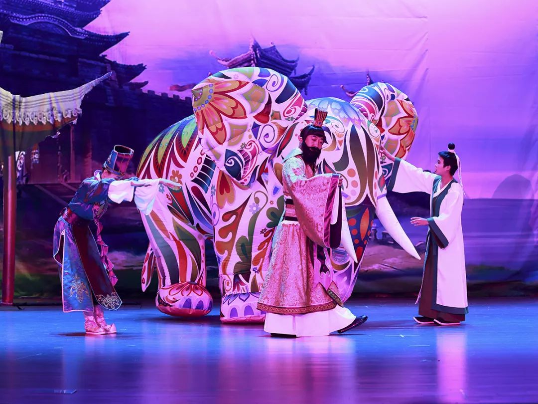想要观众完全沉浸在奇妙的舞台剧世界中,又怎么能少得了舞台美术的加持?首演舞台上,“魔法一班”、“科技馆”、“成语世界”、“家”四个风格迥然不同的主题布景流畅切换,随之而来的是炫彩灯光的明暗交替。依据灯光与场景的变化,舞台配乐也会随之变化,给观众营造了亦古亦今、亦梦幻亦科技的多重场景,将东方文化与西方美学完美地融合在一起。在道具方面,直径50厘米运用太阳能电池的巨型灯泡、悬挂于8米高空之上的机械手臂与3米高的手摇、跑步助力风车令在场观众们惊叹不已。除此之外,还有一只以“1:1”尺寸打造、由2名真人演员协同操控的巨型“活体”大象,使得“曹冲称象”的奇妙景象栩栩如生地展现在了观众的面前。