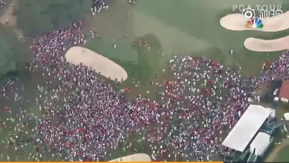 「视频显示,伍兹打进最后一杆后场面一度混乱。」