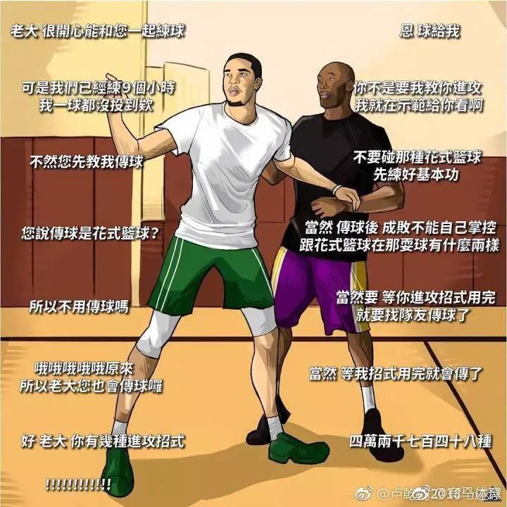 近日,凯尔特人的前锋塔图姆接受了GQ杂志的采访,过程中他透露,休赛季期间科比曾主动约他训练,塔图姆想要学习科比的低位技术和脚步,这也是他们合练的重点。此外,科比还给了塔图姆什么建议呢?塔图姆回忆道:“科比告诉我最好每一次都要出手投篮。除非万不得已千万不要传球。如果不是这种情况,尽管投篮就是。”