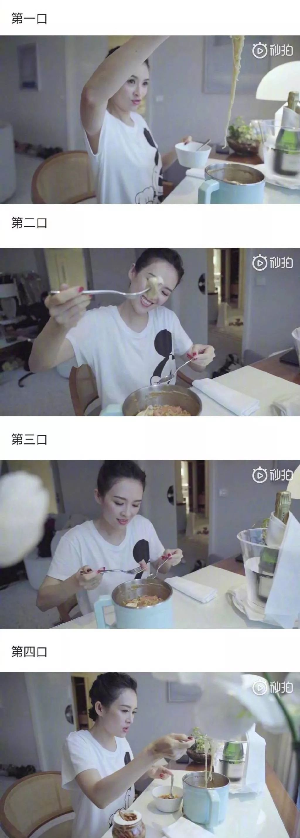 吃完四口之后,她喊道:"够了,实在吃不下去了。"于是把面条推给了工作人员。