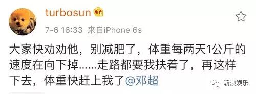 惹得孙俪在微博喊话邓超不要再减肥,因为再瘦的话体重都快和她一样了。