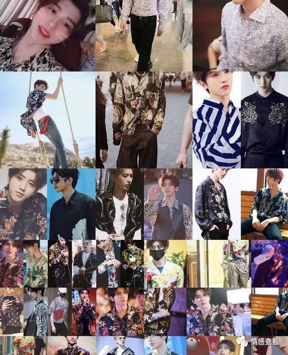 此处小编插播一条小料,有人爆料坤坤的衣柜里有三分之一都是花衬衫,从豹纹、黑底白花、海滩风到大牡丹……各式各样的花衬衫他都有。
