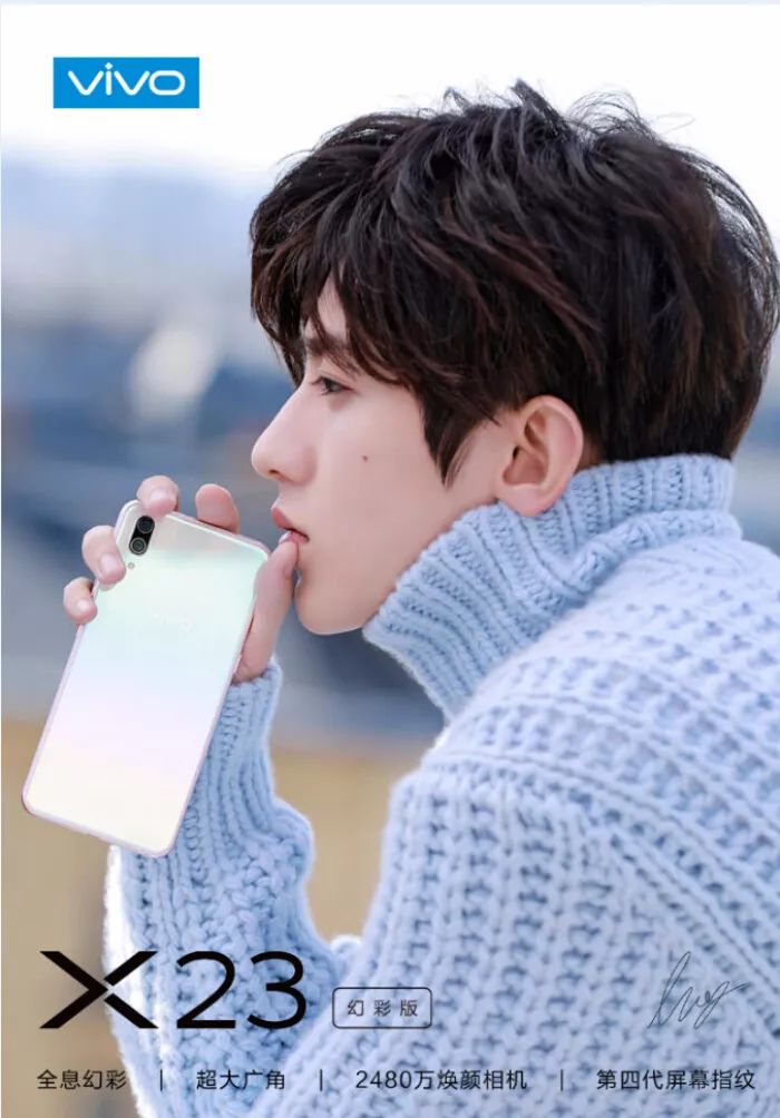 vivo在去年八月的时候官宣蔡徐坤成为X23系列的代言人,于十一月开始投放广告。