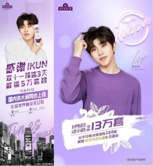 打的一手好算盘的AUSSIE自然也因为蔡徐坤的超强带货力成为双11洗护类第一。