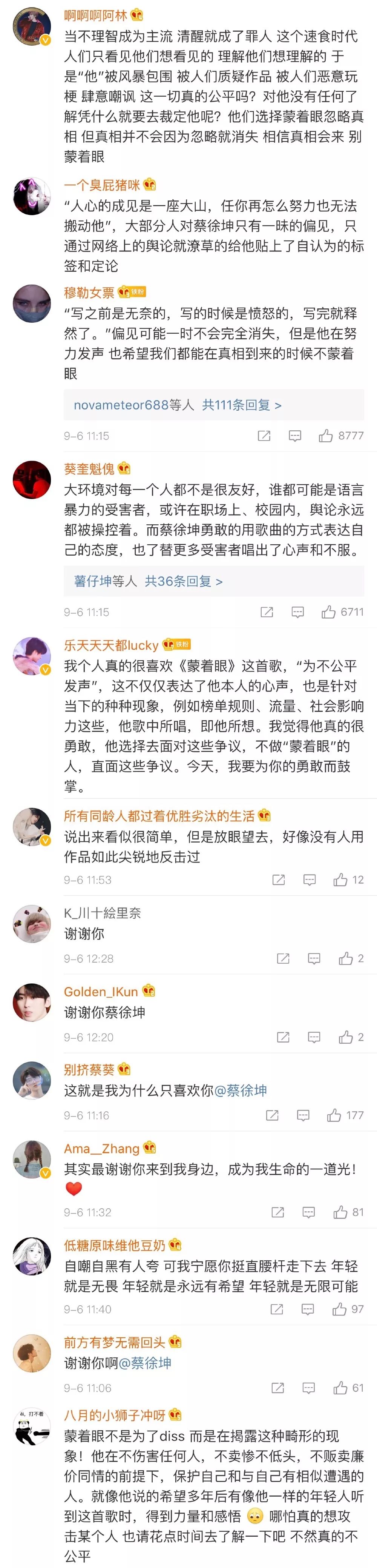 粉丝就蔡徐坤新歌回应争议一事的看法
