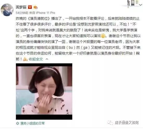 虽然最后沈梦辰没有被选,但是她的演技毕竟被观众认可,这就是她来《演员》最大的收获。