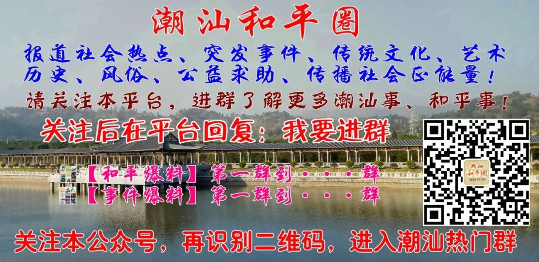 【免责声明】本刊所有内容均来自网络或圈友投稿,由潮汕和平圈编辑组进行整理编辑, 所有权利属于原作者及原出版单位,本平台对文中观点保持中立,对所包含内容的准确性、可靠性或者完整性不提供任何明示或暗示的保证,请仅作参考。如有侵权,请联系删除。