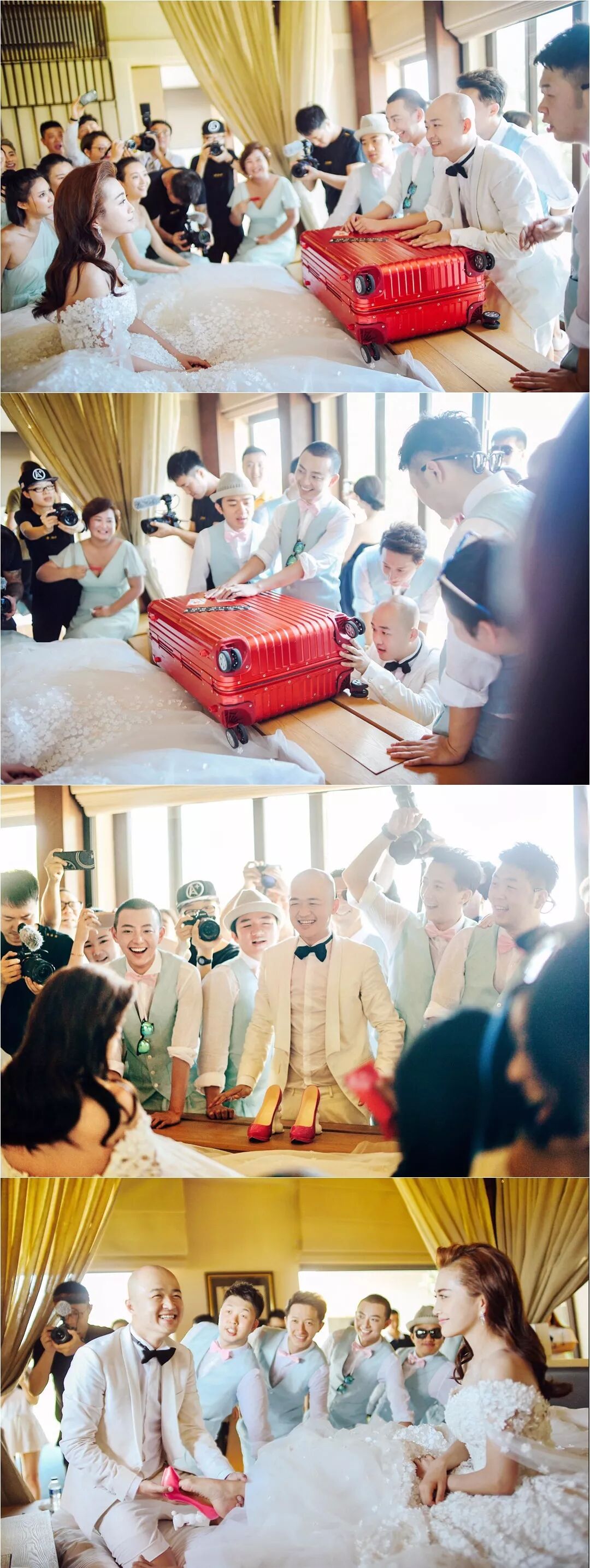 1、据说新郎伏地找鞋的姿势是“拜倒在新娘石榴裙下”的最好体现。