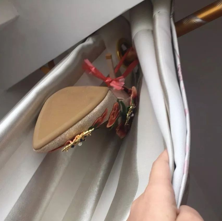 这一招感觉也是适合酒店接亲的同学们,卫生间架子上不是总有厚厚的浴巾嘛,一般也不太会用得上,所以也是绝佳的藏婚鞋好地方!