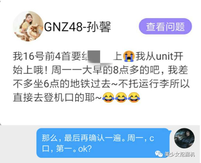 但是人的贪念总会跑出来作祟,于是在18年某次公演的时候,工具人动了不该有的念头。他私信问了孙馨的行程,没想到孙馨回答得也很详细。所以工具人就忍不住去送机了。
