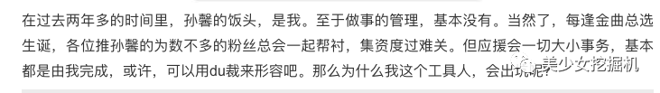 他说过去两年里,他就是孙馨的饭头,而且后援会大小事都是他,因为真的没有粉…所以说他是工具人也不为过。