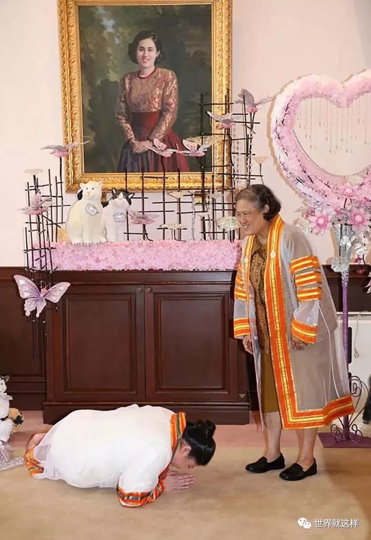 在公开仪式上,诗琳通公主一视同仁,对待自己的小侄女没有偏心,但姨侄二人的会心一笑,温馨又甜蜜。颁发证书结束后,朱他鹏公主跪在地上向姨妈行礼,皇家礼节很庄重,小公主虽然平时被姨妈宠爱,但该尊敬诗琳通公主时绝不含糊。她把胖胖的身子全部趴在地上,向姨妈行了一个大礼,看到乖巧的侄女这么懂事,诗琳通公主露出慈祥的姨母笑。